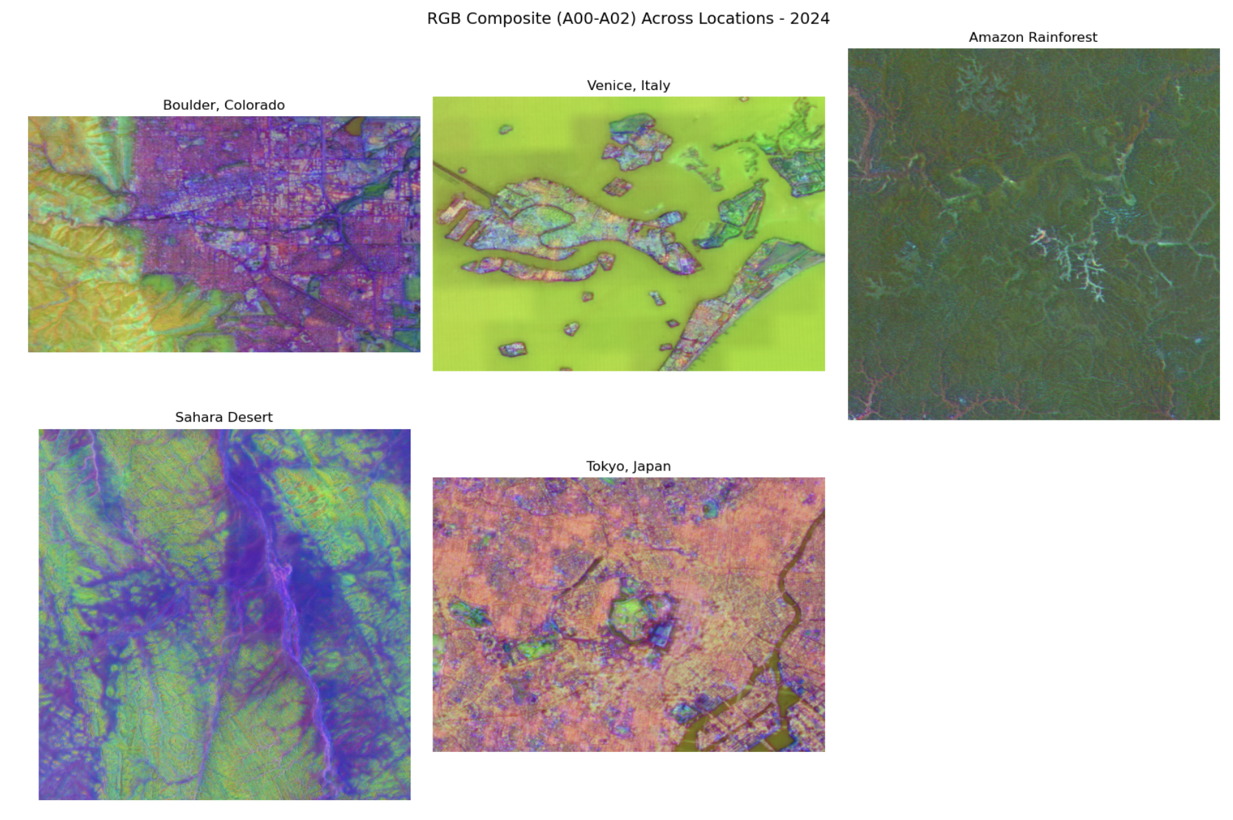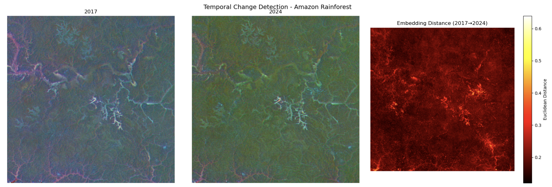 Temporal embedding differences highlighting landscape changes:
